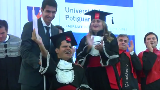 Sonho realizado! Jovem deficiente visual com paralisia cerebral se forma em direito em Natal